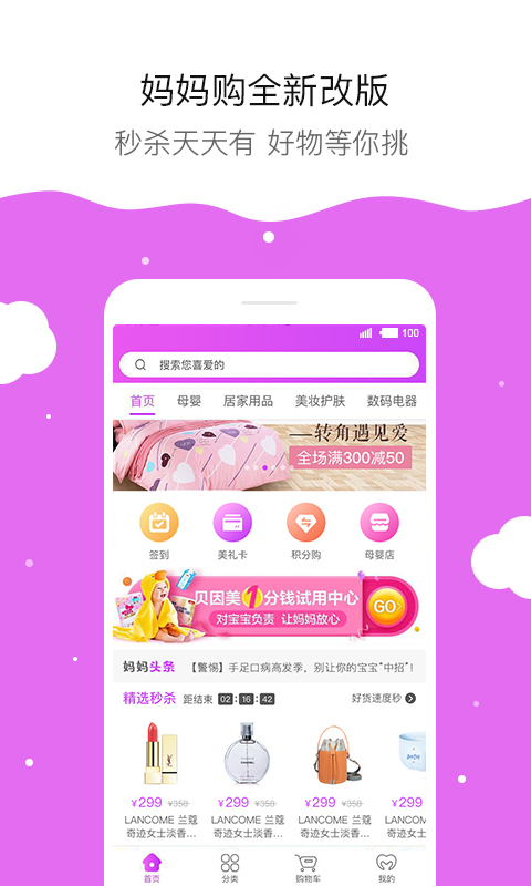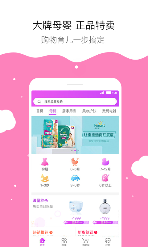 【超低价限时特卖】每日精选爆款商品限时特惠,更有海外直邮正品专场和定时秒杀活动,让用户以最低价格买到高品质母婴用品。