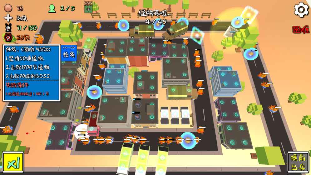科技升级系统包含300多项升级选项,玩家可以使用银币在游戏前进行强化。防御塔升级分为人物升级和武器升级两个维度,人物升级可获得属性点自由分配,武器升级则能解锁新技能和强化现有能力。这些特色系统共同构成了游戏独特的策略深度。