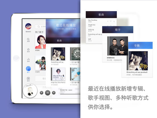 iPad版是专为苹果平板用户精心设计的音乐软件,通过智能算法分析您的听歌偏好,为您精准推荐符合口味的优质音乐。无论是当下最火爆的新歌榜单,还是经典怀旧金曲,都能在这里轻松找到。软件采用高清音质解码技术,搭配沉浸式播放界面,让您享受剧院级的听觉体验。简洁大气的操作界面完美适配iPad大屏,滑动切歌、手势调节音量等贴心功能让音乐操控更加得心应手。