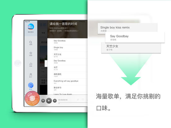 精心打造20+音乐分类和1000+主题歌单,从工作学习到运动健身,从甜蜜情歌到摇滚电音,总有一款适合您当下的心情。专业编辑团队每日更新推荐歌单,带您探索更多音乐可能。