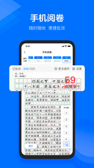 -智能批改:采用先进的图像识别技术,通过手机摄像头即可实现实时扫描批阅,操作简单快捷,彻底告别繁琐的传统批改方式