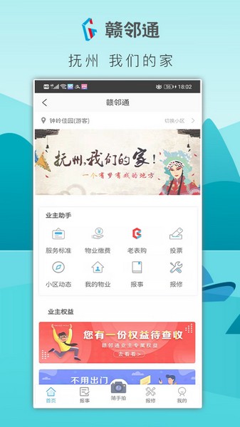赣邻通提供丰富的功能模块满足业主多样化需求:绑定户号后可随时查询物业费账单,支持多种在线支付方式,轻松解决缴费问题;实时更新小区动态,让业主不错过任何重要通知;创新的随手拍报事功能,遇到问题可直接拍照上传,实现一键快速报修;专业的设备维修服务,由专人负责处理业主申请;完善的业主权益保障体系,确保每位业主都能享受到优质服务;此外还提供便捷的社区购物平台,购物同时还能享受物业费返现优惠。
