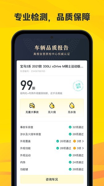车辆信息管理:支持车辆信息的录入、查询、更新与展示,可上传高清车辆照片和检测报告。