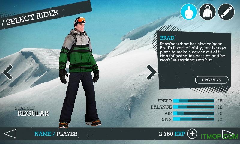 从16位滑板手中选择,按你的偏好用并你最喜爱的装备对他们进行详细定制。海量滑雪板可供你选择,从不同的尺寸到设计,你可以用它们提升滑板手的技巧和能力。每个装备都会影响角色的速度、稳定性和特技表现。