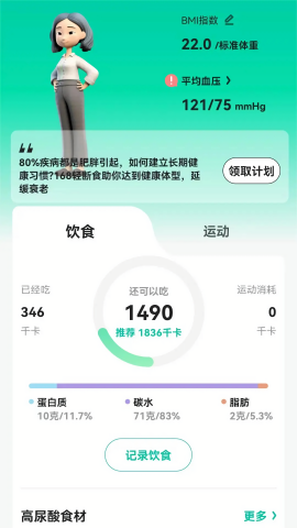 饮食管理:包含超过10万种食物营养数据,支持扫码录入和自定义菜品功能。