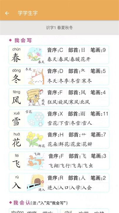 全面的生字解释配有动画演示和书写指导,可以让孩子轻松的学习语文生字;