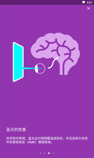 提供丰富的自定义选项,用户可以根据个人喜好调节色温、亮度和对比度等参数,打造专属的视觉体验。操作界面简洁直观,一键即可切换多种预设模式,让夜间使用手机变得更加轻松便捷。采用医学认证的护眼技术,通过精确的蓝光过滤算法和动态亮度调节,有效缓解眼睛干涩、疲劳等不适症状。软件还支持定时自动切换功能,可以根据日出日落时间或自定义时段自动启用护眼模式。
