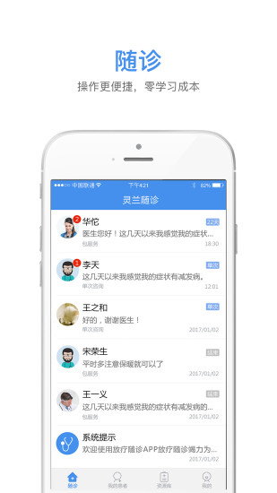 灵兰随诊医生版是一款专为医疗行业打造的智能化在线诊疗平台,致力于为医生和患者搭建高效便捷的沟通桥梁。通过该应用,医生可以随时随地为患者提供专业的医疗咨询和病情跟踪服务,同时还能建立个人医疗资源库,便于病例管理和学术研究。平台采用先进的加密技术保障医患信息安全,并支持多种服务周期选择,满足不同患者的个性化需求。无论是日常随诊还是疑难病症的远程会诊,灵兰随诊都能提供专业可靠的解决方案,是医生提升工作效率、拓展医疗服务的得力助手。
