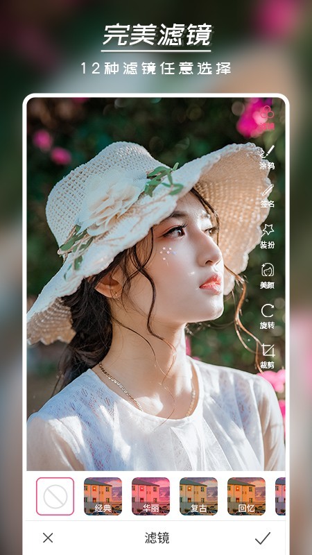 海量的美颜滤镜等你选择,注意千万不要选择错了哦人像和景物是完全不同的滤镜。软件特别设计了智能滤镜推荐系统,能根据照片内容自动匹配最佳效果,同时保留了手动调整的灵活性,让你轻松获得专业级的效果。