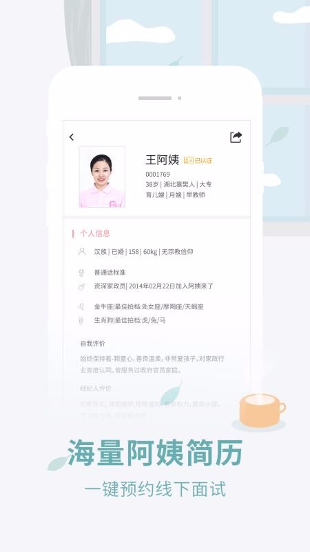 致力于打造国际化的中国家政服务品牌,不断提升服务标准和品质;顾问式营销,家政经纪人为您提供一对一的一条龙服务,全程贴心指导;数以万计的阿姨和庞大的家政经纪人群体,确保服务资源充足,满足各类需求。