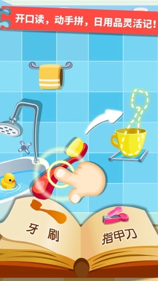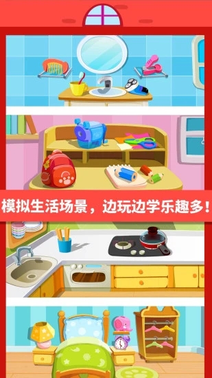 游戏以熊猫宝宝的温馨小家为背景,在这个充满生活气息的房子里,藏着许多有趣的日用品等待孩子们去发现。从客厅里滴答作响的时钟,到浴室里冒着泡泡的浴缸;从厨房中妈妈系着的围裙,到书房里爸爸用的打火机,每一个物品都设计得栩栩如生。游戏特别注重细节表现,比如时钟会真实走动,浴缸里的泡泡会随着触摸而变化,这些精巧的设计都能激发孩子的好奇心。当孩子找到隐藏的日用品时,游戏会播放标准的发音和详细的介绍,帮助孩子全方位认识这些物品。
