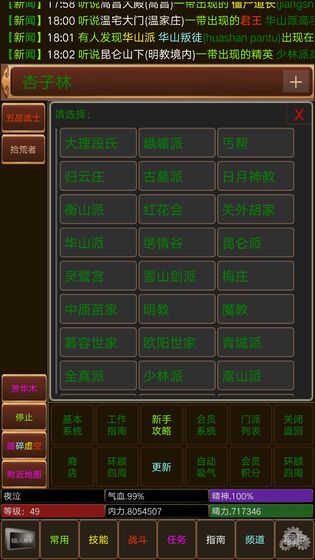 加入喜欢的门派,学习更多的武林功法,自创绝世武功,各种武林绝招灵活使用。玩家可以自由选择修炼方向,通过不同的功法组合,创造出独一无二的战斗风格。