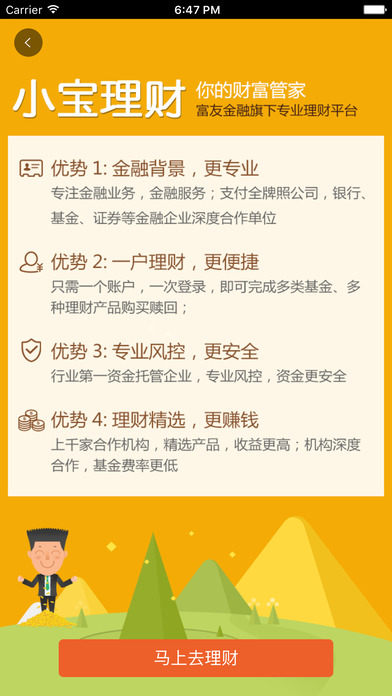 新增"小宝"频道,为用户提示优质安全高收益的理财服务,专业金融团队精选产品,让闲钱也能创造价值;
