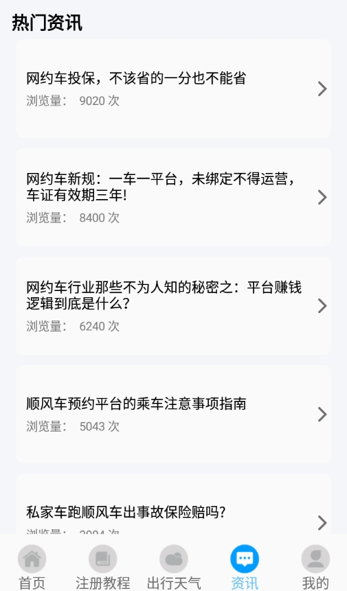 平台首页特别设置了滴滴顺风车主和高德顺风车主专属入口,方便不同来源的车主快速接入系统。针对新用户,app提供详细的注册指引和操作教程,即使是初次接触网约车的司机也能轻松上手。出行前,用户可通过内置的天气查询功能了解实时气象状况,为行程做好充分准备。此外,平台还设有资讯板块,持续更新网约车行业动态、政策法规等实用信息,帮助用户掌握最新资讯。