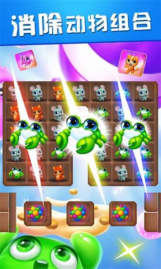 独特的游戏道具-游戏内置了多种功能各异的道具系统,包括雷电球、彩虹球、炸弹等强力道具,这些道具可以帮助玩家在关键时刻扭转局势。道具之间还可以产生连锁反应,创造出意想不到的消除效果,大大提升了游戏的策略性和可玩性。