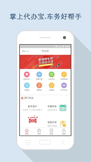 代办宝是一款专为车主打造的智能化汽车代办业务软件,致力于为用户提供高效、便捷的一站式车管服务。通过代办宝,您可以彻底告别传统业务办理中的繁琐流程,无需亲自前往车管所排队,也无需提前预约,只需动动手指即可完成各类车管业务的办理。我们的专业团队将为您提供专人专办服务,确保您的每一笔业务都能得到高效处理,让您再也不用为汽车相关事务而烦恼。无论您是新手车主还是资深车友,代办宝都能为您带来前所未有的便捷体验,快来下载体验吧!