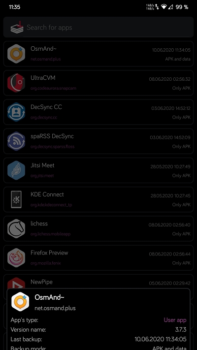 OAndBackupX是OAndBackup的进化版,目的是将该应用带到2020年,增加对最新版本的android的支持,并更新其外观。相比传统备份工具,它提供了更流畅的用户体验和更稳定的性能表现。