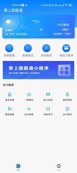 掌上路路通天津是一款专为天津市民打造的智能交通出行服务平台,集成了多项实用功能,让出行更便捷。无论是日常通勤还是自驾出游,都能提供全方位的交通信息服务。用户可以通过app实时查询违章记录、规划最优路线、了解高速路况,还能获取限行提醒和天气资讯。这款app不仅操作简单,而且功能强大,真正实现了"一部手机走遍天津"的便利体验,是天津市民不可或缺的出行助手。