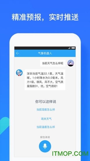 深圳天气(ShenzhenWeather)是深圳市气象局倾力打造的专业气象服务平台。当您启动应用时,系统会智能定位您当前所在位置,并在主界面直观展示包括实时温度、湿度、风速风向、气压、能见度等关键气象指标,同时提供未来7天的精准天气预报。应用还特别设置了气象预警提示功能,确保您能第一时间掌握重要天气变化。