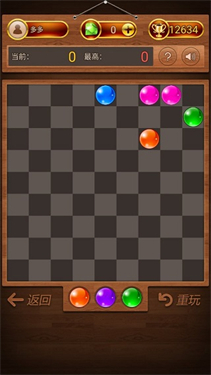 游戏界面设计直观明了。开局时会随机生成多种颜色的魔珠,屏幕下方会贴心地提示即将出现的魔珠颜色。玩家只需点击选中魔珠,再点击目标位置即可完成移动操作。每回合只能移动一颗魔珠,需要谨慎规划每一步行动。