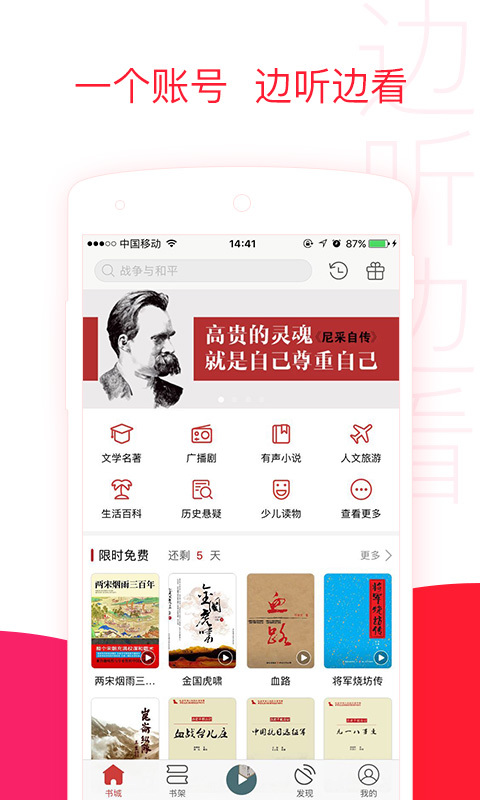 一线演播享受:平台邀请李野墨、郭政建等国内顶尖演播艺术家参与录制,以专业的播音水准为您呈现最优质的声音体验,让每一本书都栩栩如生。