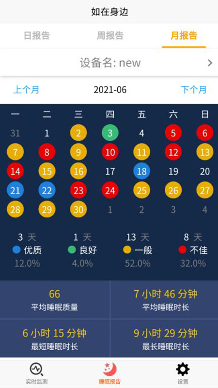 这款软件中的数据非常精准,用户可以非常直观的查看自己的日报表,周报表,月报表等,查看自己当月完成的状态是幼稚还是良好,还是一般,可以帮助用户提高自己的睡眠质量,更好的掌握自己的健康数据,如果有任何的问题,可以提前检测。特别值得一提的是,软件采用医疗级数据采集标准,所有检测结果都经过多重验证,确保数据的可靠性。系统还会根据异常数据发出预警提示,让用户能够及时关注潜在的健康风险。