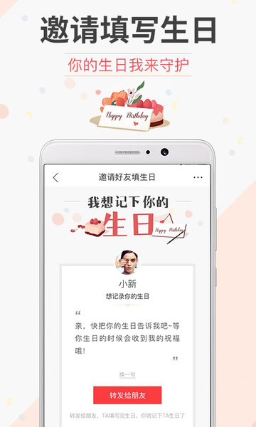 智能发现「通讯录」里好友生日,再也不用刻意询问了,添加生日不费时。系统会自动扫描并提示未记录的生日,省去手动输入的麻烦。