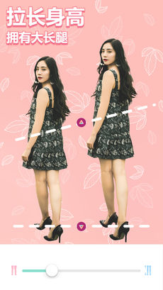 安装美啦相机,瞬间拥有火辣身材!轻松几步变身女神,涨粉就是这么容易!新增的全身美化功能可以一键调整身材比例,让你在照片中展现最佳状态。