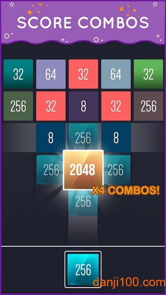 数字方块一个个落下,通过手势滑动界面上的数字方块,当数字相同的两个方块堆叠在一起后,他们会结合在一起,数字变为原来两倍,从而使游戏分数增加并消除方块。建议玩家优先合并角落的数字方块,为后续操作预留空间。同时要注意保持游戏区域的平衡,避免过早堆积到顶部。当方块堆到区域最上方而无法消除层数时,则游戏结束。