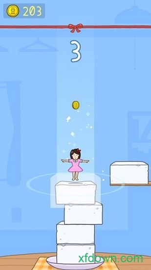 操作方式简单直观,只需通过点击屏幕控制小女孩在左右移动的豆腐块间跳跃。看似简单的玩法实则暗藏玄机,随着游戏难度逐步提升,玩家需要精准把握跳跃时机,体验紧张刺激的闯关乐趣。