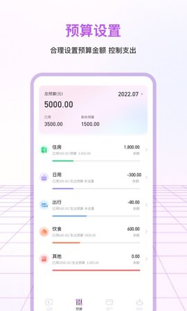 预算提醒:支持设置周期性预算,系统会根据历史数据智能推荐合理的预算额度。