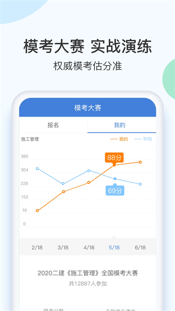 万题库模考大赛,100%依据官方标准出题、仿真机考系统,高效查漏补缺,让您离通关更近一步!定期举办模考大赛,让考生在竞争中检验学习成果,激发备考动力。