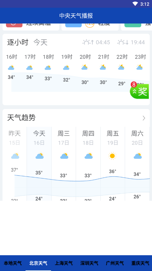 恶劣天气预警,提前防范;遇到暴雨、台风等极端天气会第一时间推送提醒。
