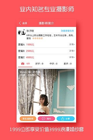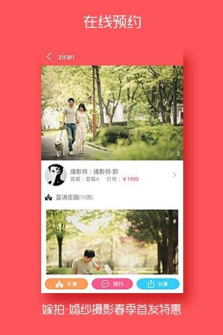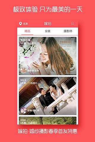 嫁拍安卓版是一款专注于婚纱摄影预约的移动应用,致力于为新人们打造完美的婚纱拍摄体验。通过这款应用,用户可以轻松浏览众多摄影师的精选作品集,直观感受不同摄影师的风格特色。当遇到心仪的摄影师时,只需简单操作即可完成预约。应用提供多样化的拍摄风格选择,无论是追求韩式小清新的简约格调,还是钟情于中式传统的大气典雅,亦或是向往欧式宫廷的奢华浪漫,专业摄影师都能为您量身定制,让每对新人都能展现出最动人的一面。