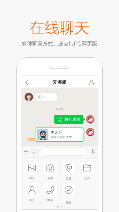 -简单易用:延续主流社交软件的操作逻辑,零学习成本上手。直观的功能布局配合智能引导系统,新员工无需专门培训即可熟练操作,大幅降低企业培训成本。
