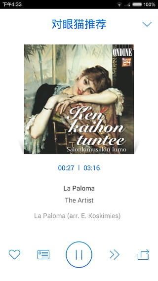 新鲜唱片抢先听,古典专题也流行。对眼猫FM与全球知名唱片公司合作,第一时间上线最新发行的古典音乐专辑,同时定期推出精心策划的古典音乐专题。