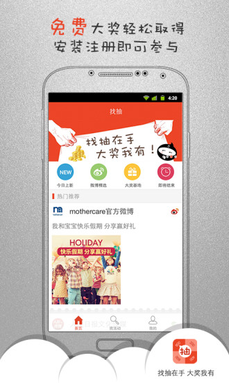 整合了微博、微信等平台上的优质抽奖活动,让您在一个app内就能参与多个平台的抽奖。