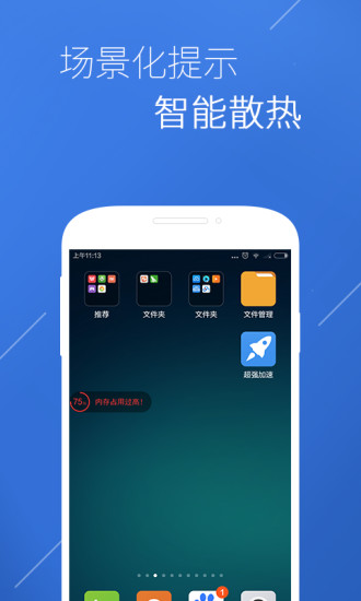 创新的温度控制系统,通过智能调节CPU频率和后台进程,有效的为手机散热、降温,cpu降温效果可达5-8℃,电池降温效果同样出色,有效保护硬件寿命。