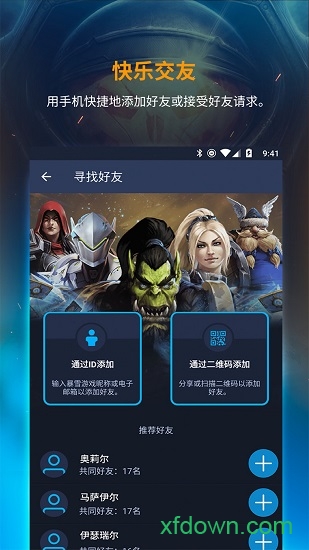 现在,通过手机就可以使用暴雪战网应用程序的添加与管理好友功能。你可以发送和接受好友请求,查看推荐好友,甚至通过扫描二维码面对面添加好友。新增的好友分组功能让你可以按照游戏、公会等不同维度管理社交关系,让交友体验更加个性化。