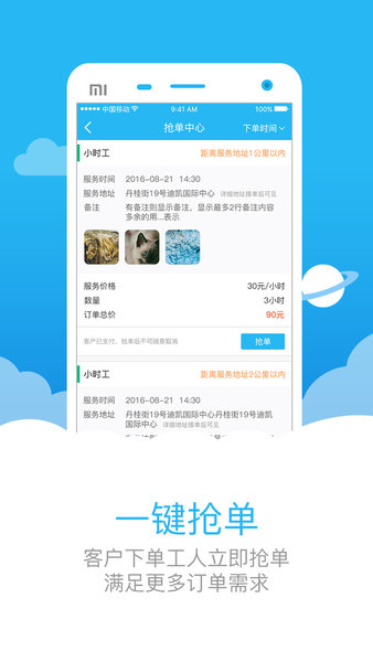 客户下单后,工人可以立即抢单,平台提供家政、维修、搬运等多种订单类型,满足不同技能工人的接单需求;