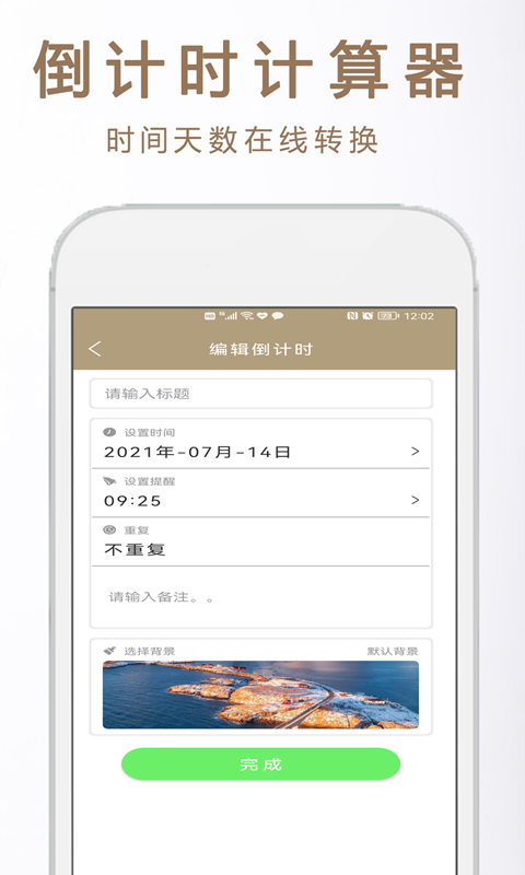 图片选择:可以自选图片作为背景,记录重要事件。支持从相册导入或直接拍摄,让每个纪念日都有专属的视觉记忆。