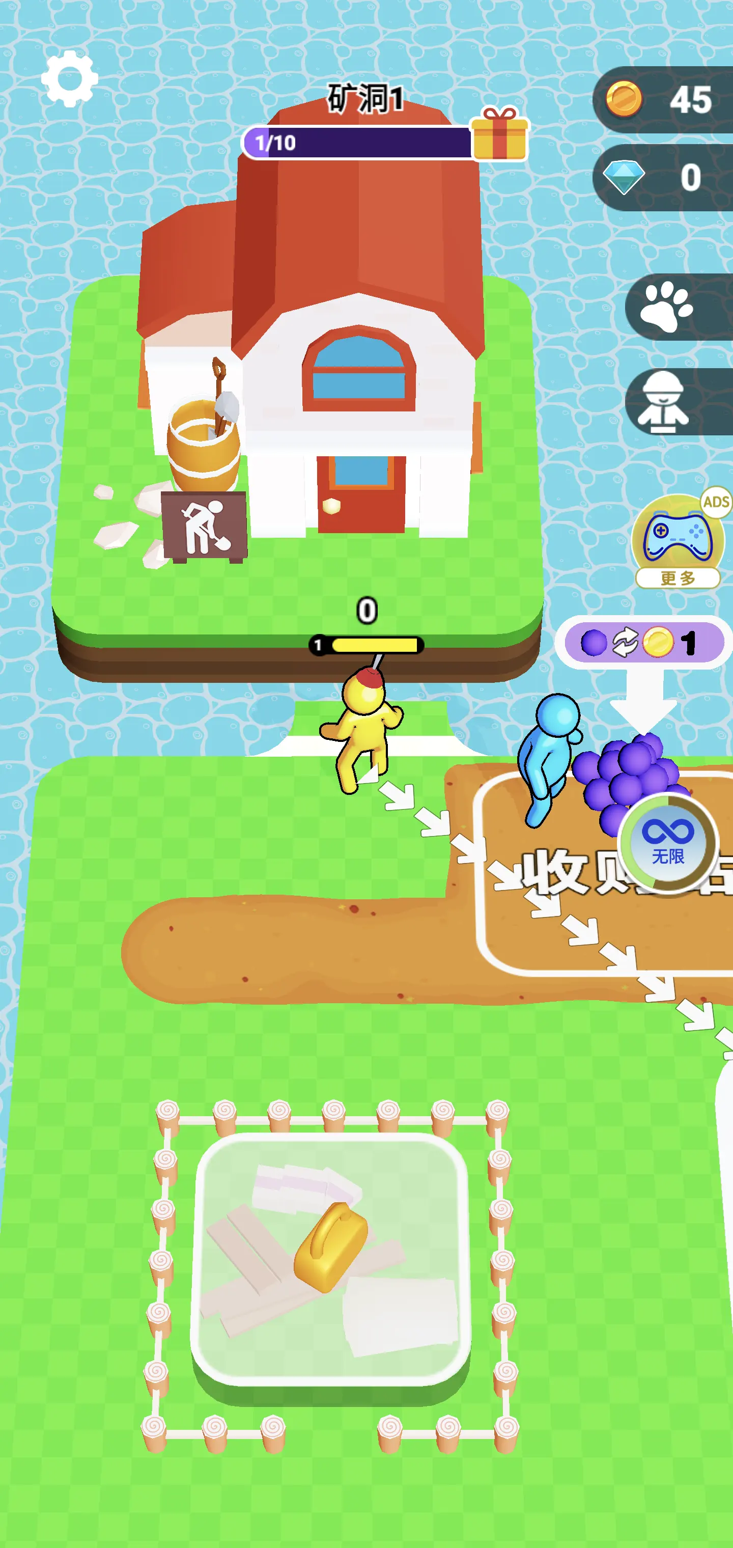 游戏还引入了工人系统,玩家可以招募工人来协助挖掘工作。通过花费金币升级工人,可以显著提升整体挖掘速度。合理管理工人团队是游戏后期快速发展的关键策略。