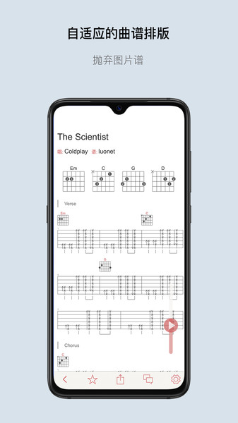 采用先进的排版技术,无论您的设备屏幕大小如何,都能获得最佳的曲谱显示效果,是您随身携带的智能谱库。