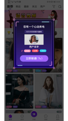 帮你找到自己的专属缘分,拥有更多的,主动一些说不定就能有故事发生;系统会根据你的兴趣爱好智能推荐匹配对象,提高交友成功率。