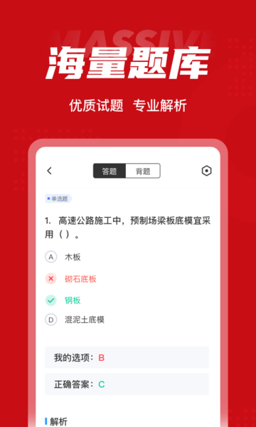 提供大量的模拟试题,实时在线进行学习,模拟考试在线演练。题库包含数千道高质量试题,涵盖所有考试科目和题型,支持随时随地练习,让碎片时间也能变成宝贵的学习机会,全面提升备考效率。
