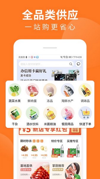 品类齐全:平台汇集了米面粮油、干杂调味、餐厨用品、酒水饮料、生鲜果蔬等全品类食材,满足各类餐饮企业的多样化需求。