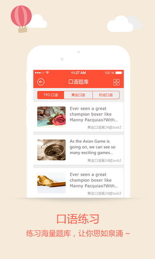 收集多年真题,全面提升词汇、语法、听力等能力,注重解决考试中的实际问题,帮助你快速作答。真题库按年份和难度分类,支持智能组卷功能。专为移动用户设计,界面简洁高效,让口语练习变得简单快捷,随时随地开始你的学习之旅。APP支持离线下载功能,在没有网络的情况下也能学习。真人老师一对一口语讲解和评分,结合日常练习和反思,帮助您轻松克服口语难点。评分系统采用多维度评估标准,包括发音、流利度、语法准确性等。