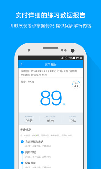 十年真题,五大专项:软件收录了十余年国考和省考真题,每道题目都经过两位授权名师严格审核,确保答案准确无误。覆盖五大专项和160个考点,用户可针对薄弱环节进行专项练习,系统化提升考试能力。每个考点都配有详细解析,帮助用户深入理解知识点,掌握解题技巧。