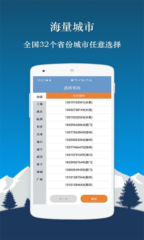 【号码放心】软件提供全国各地的虚拟号码资源,用户可以根据实际需求选择归属地。无论是商务出差还是个人使用,都能找到最合适的号码配置。