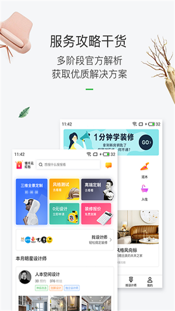 【金牌设计师】汇聚全国顶尖设计精英,提供一对一专属设计服务,让您的家与众不同。